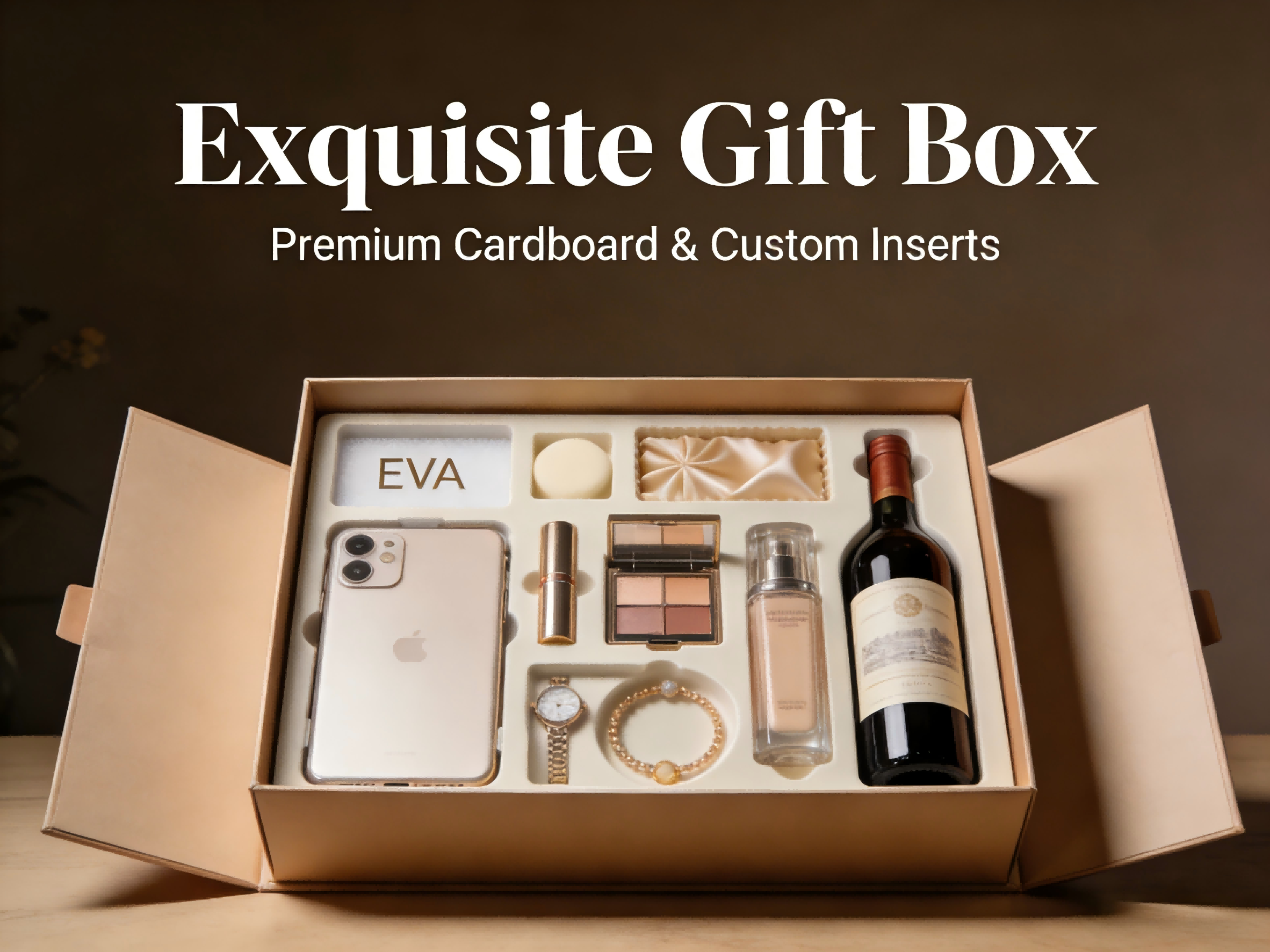 Crafted from premium cardboard with advanced printing, these gift boxes can include inserts like EVA, sponge, foam, or silk, depending on the product. They’re ideal for high-end items like electronics, cosmetics, jewelry, and wine.”